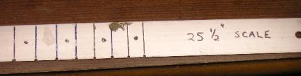 I carefully filed notches on the rule at each fret-line so I could