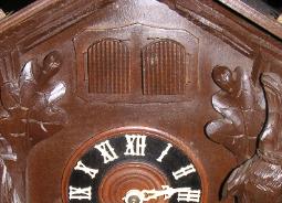 Meet the Cuckoo with Quarter Quail Clock!!!!!!!!!!!! These rarer models have 2 doors above the dial instead of 1>>>> The quarter quail typically pops out of the left hand door to announce every quarter hour through 1 bellow followed by a smack on the gong, which in this case goes: 1st quarter: koo---koo-koo (gong) 2nd quarter: koo---koo-koo (gong)--koo---koo-koo (gong) (at which point the cuckoo train is tripped giving the following 2-bellow call for the half hour): KOO-koo (gong)